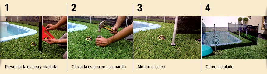 La instalación es muy sencilla y lo puede hacer cualquier persona. Te enviamos un manual de instalación y solo tenes que contar con una cinta métrica para colocar las estacas en el lugar que te indicamos, un martillo para clavar las estacas y un nivel para chequear que queden derechas y al mismo nivel.